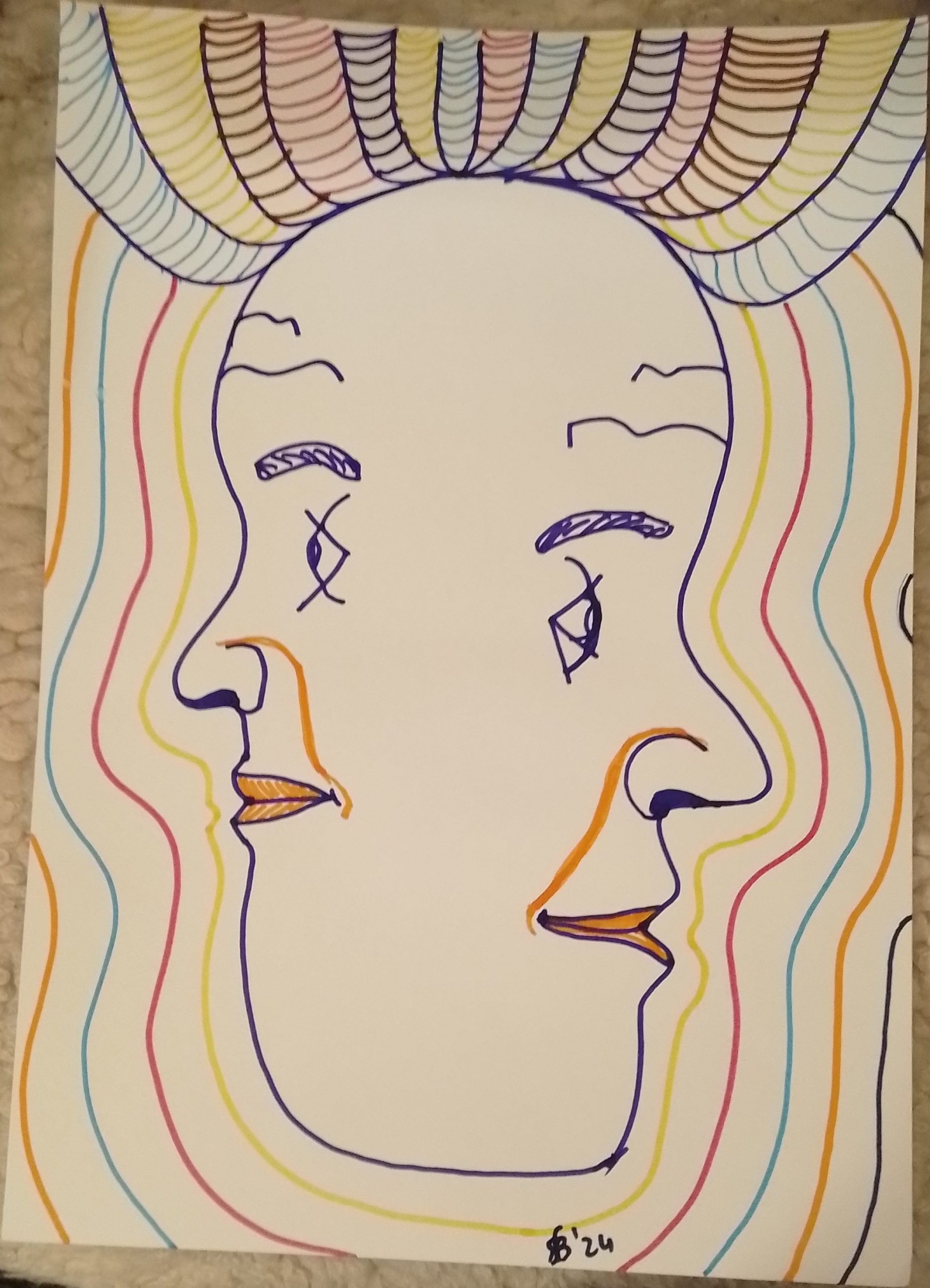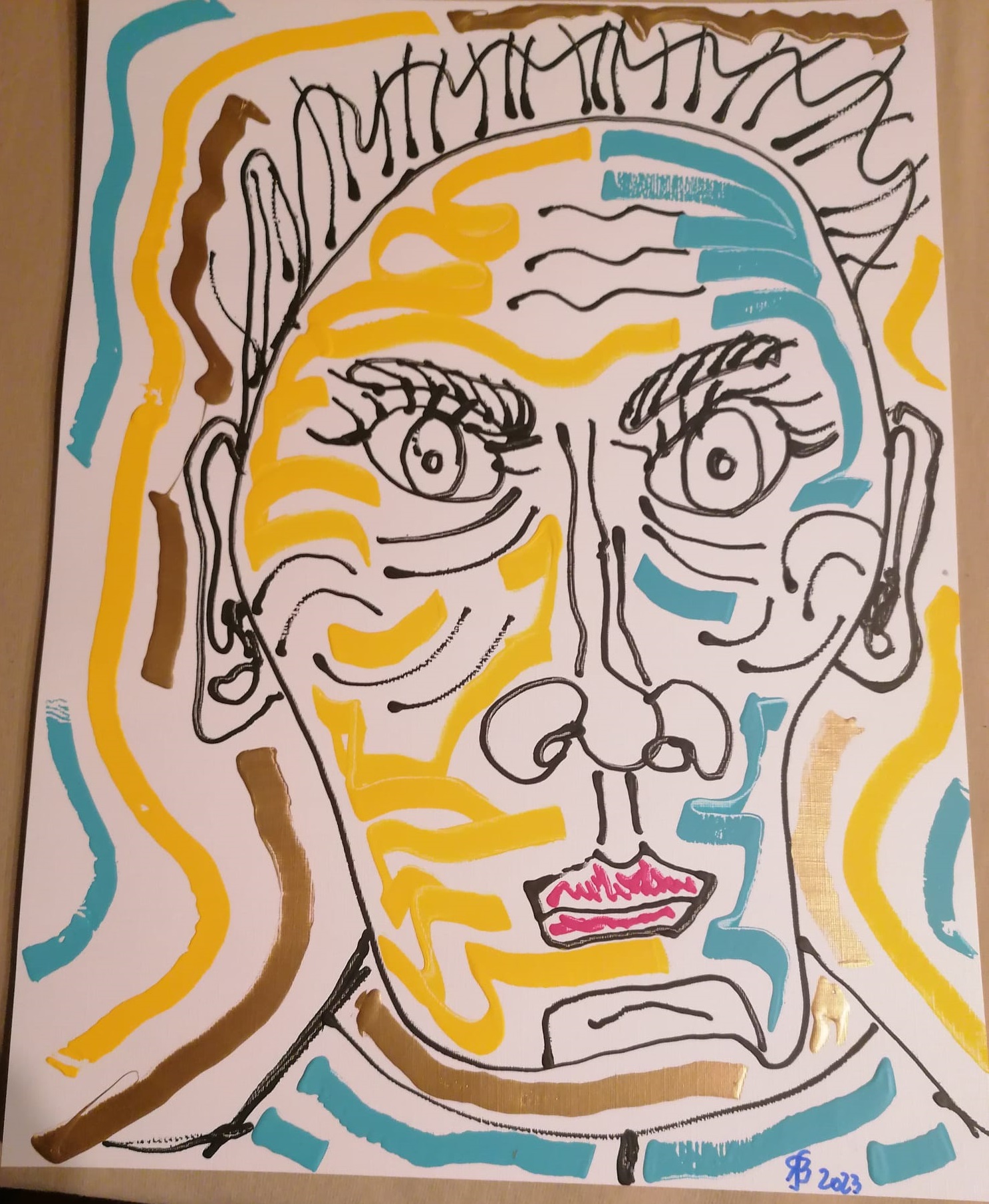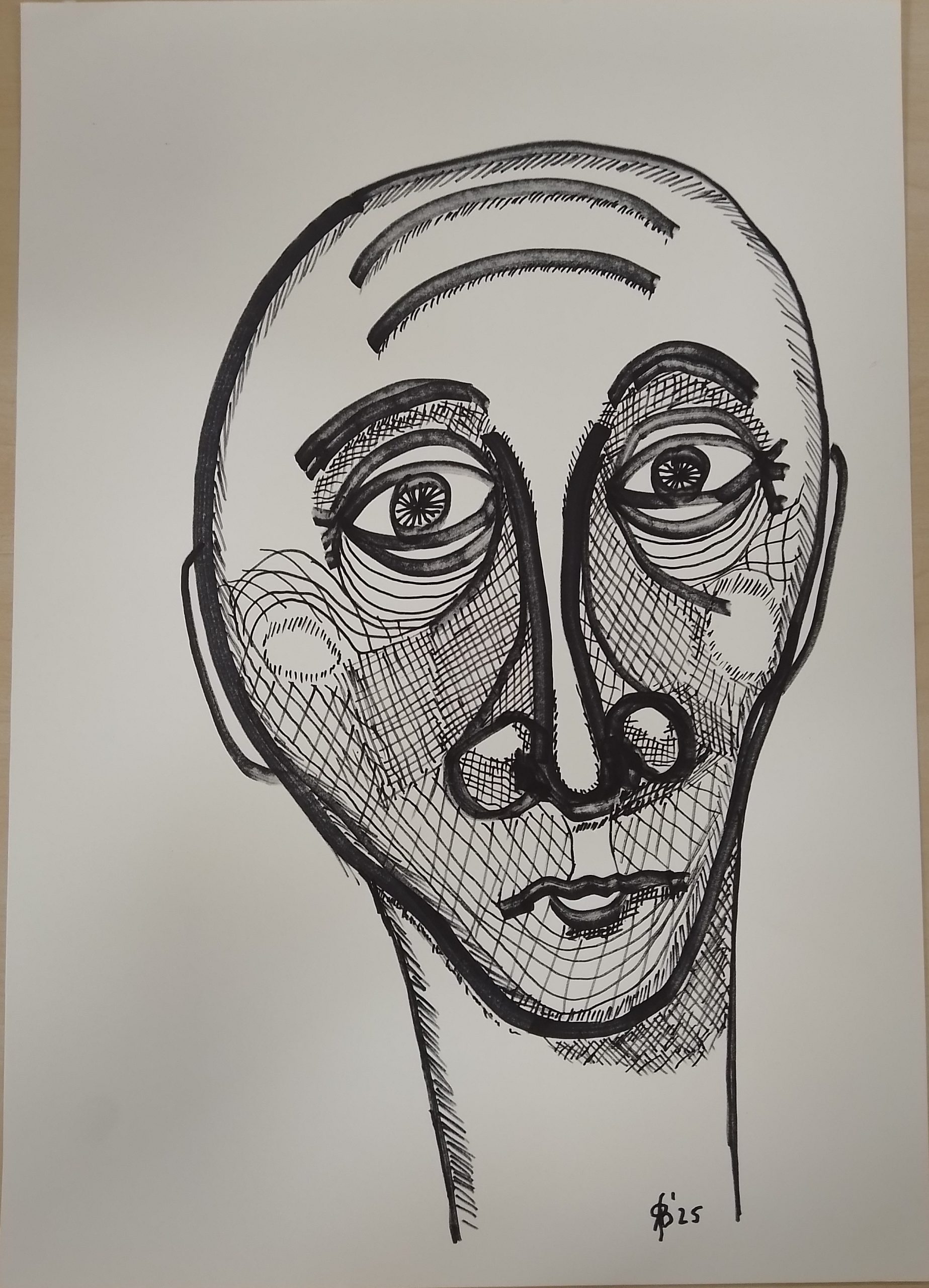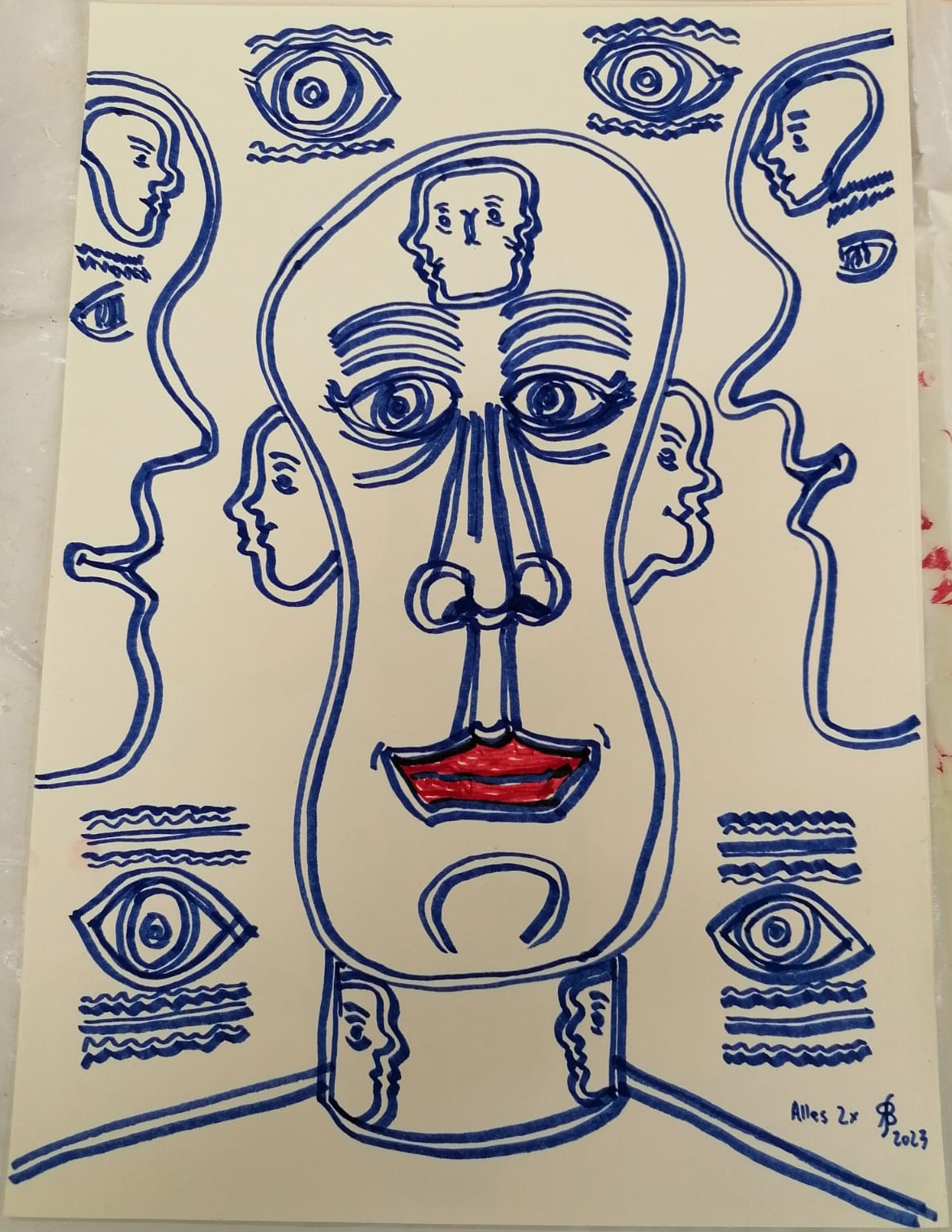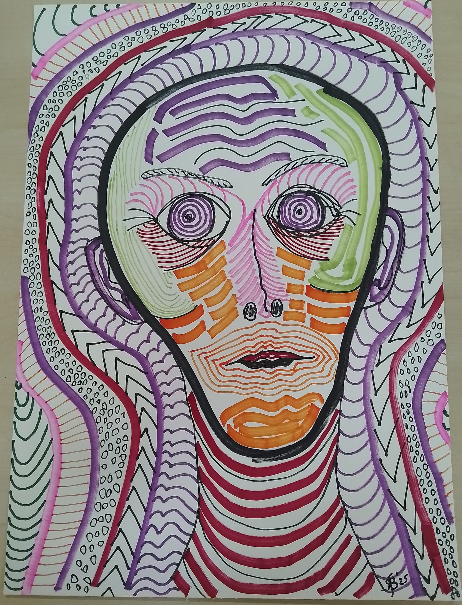 • Gesicht-mit-senkrechten-Linien-40x28cm-2023