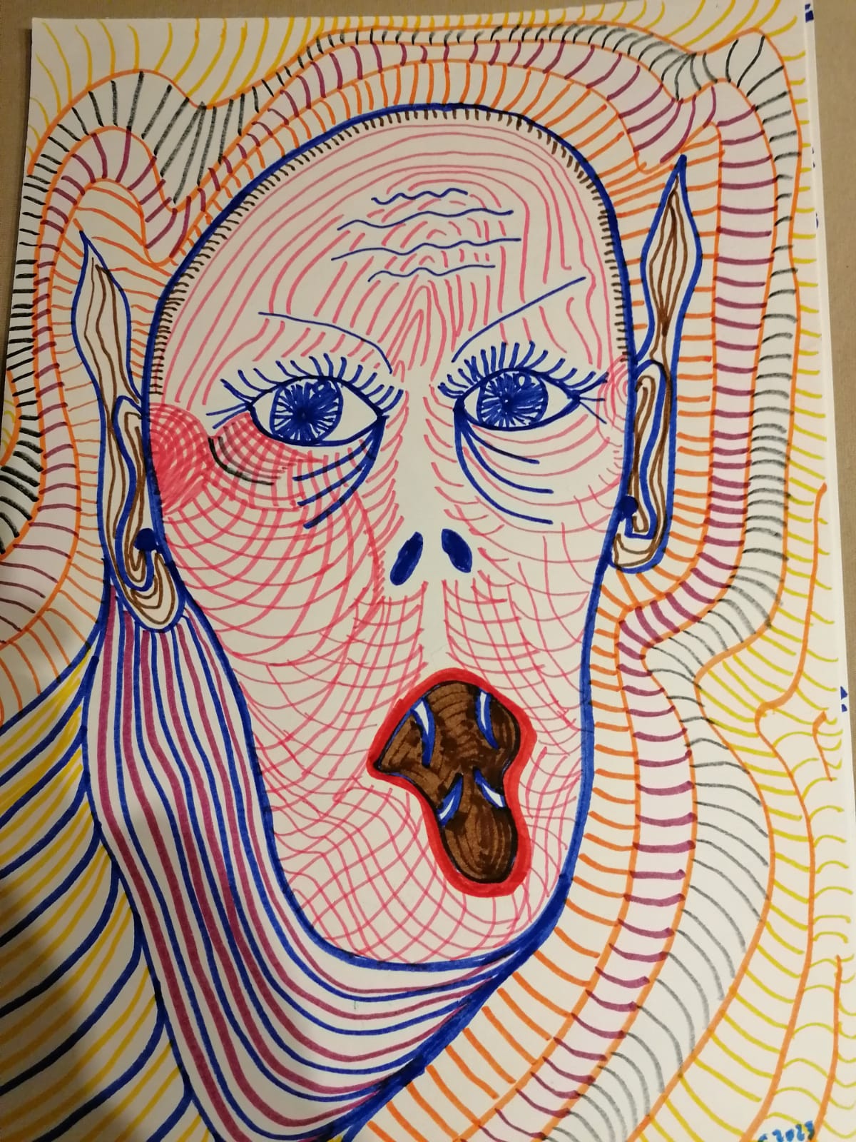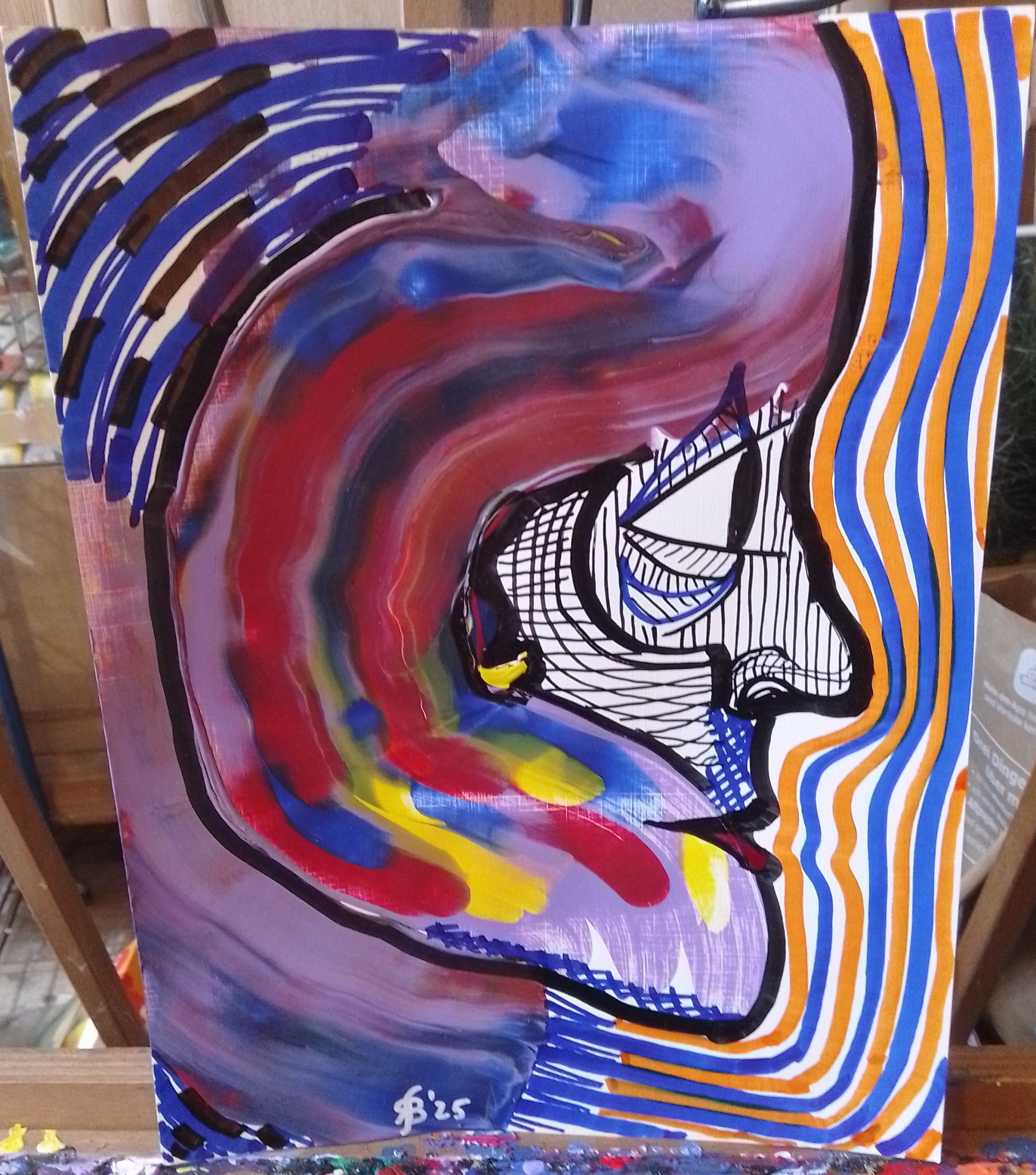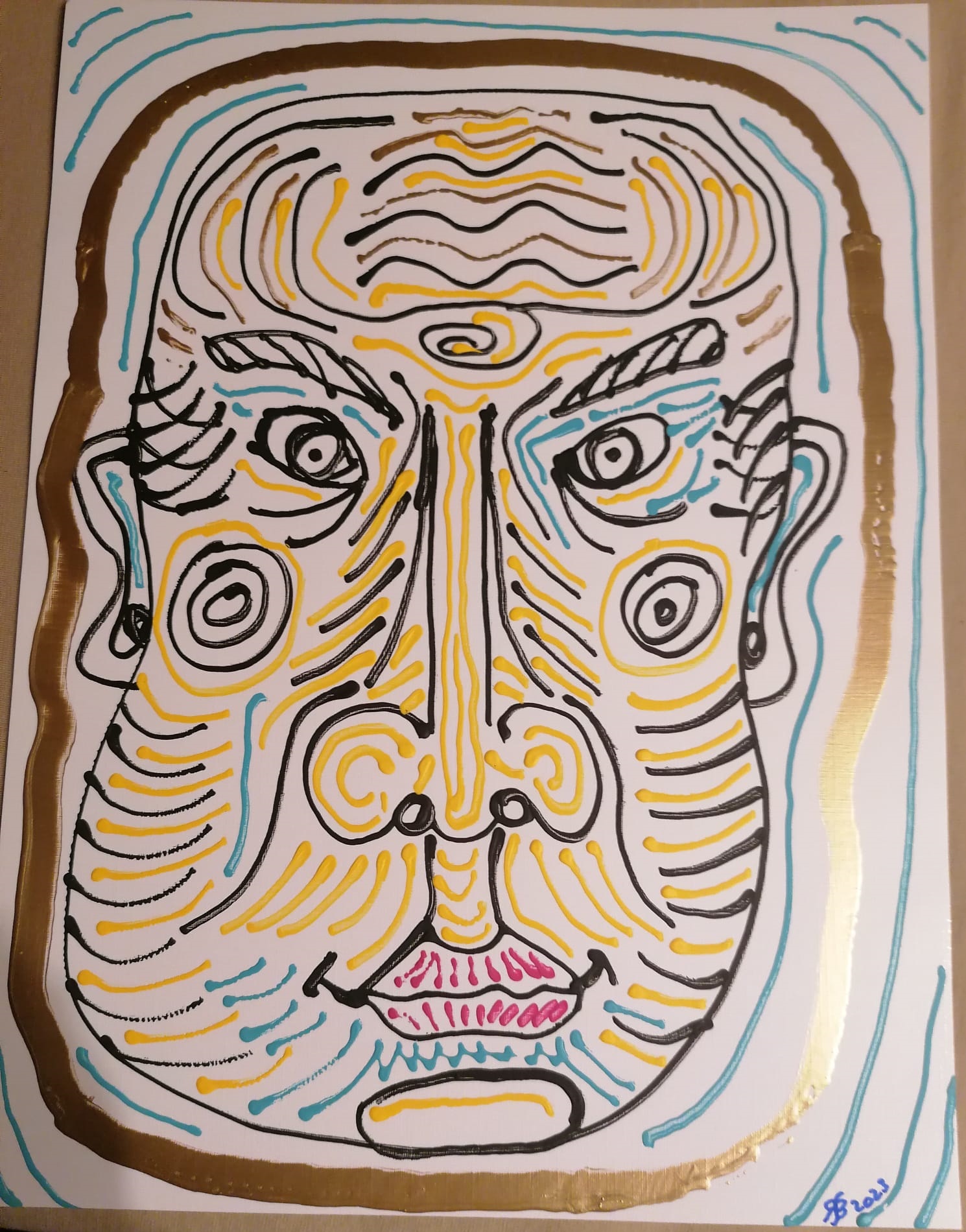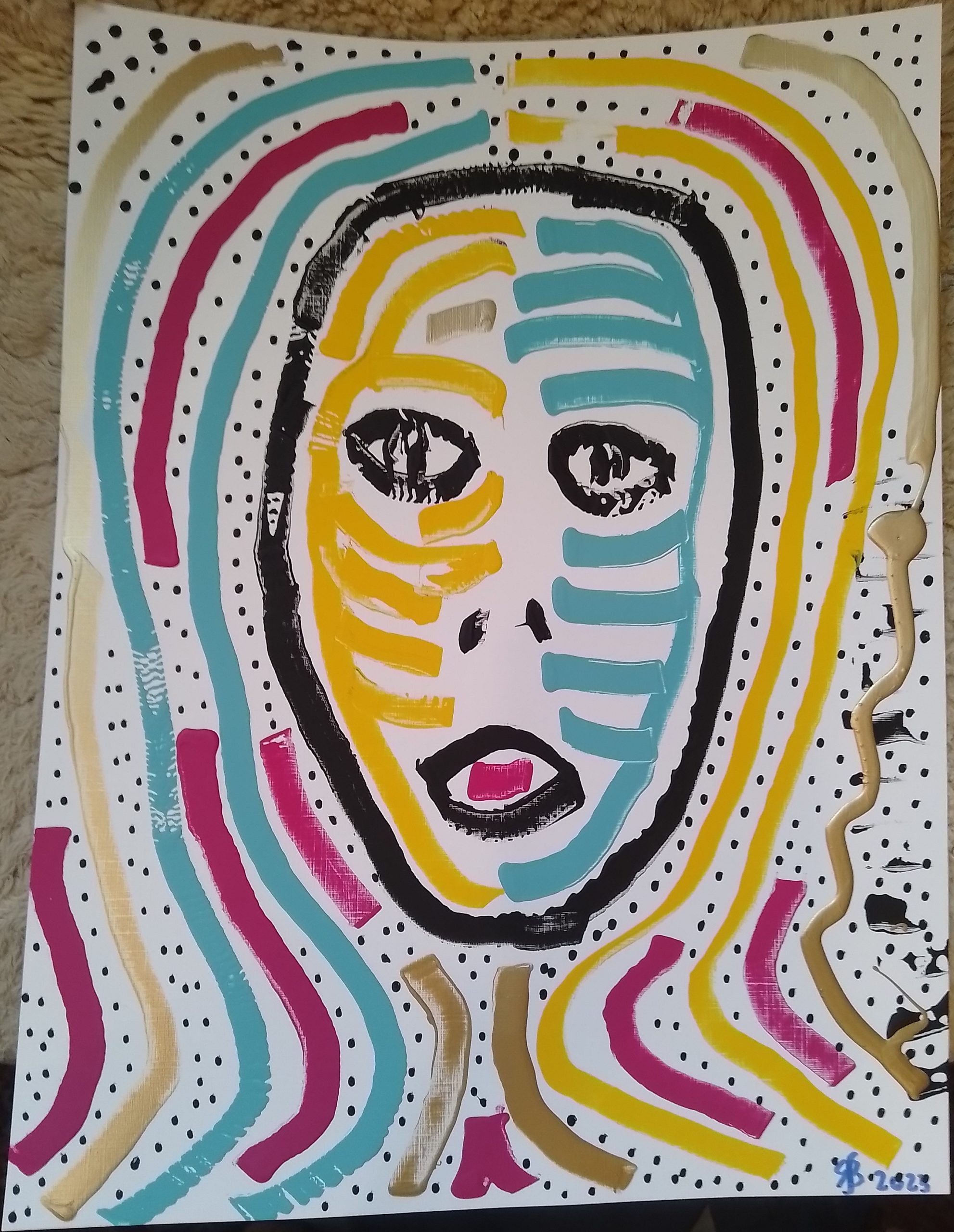 • Gesicht-mit-senkrechten-Linien-40x28cm-2023