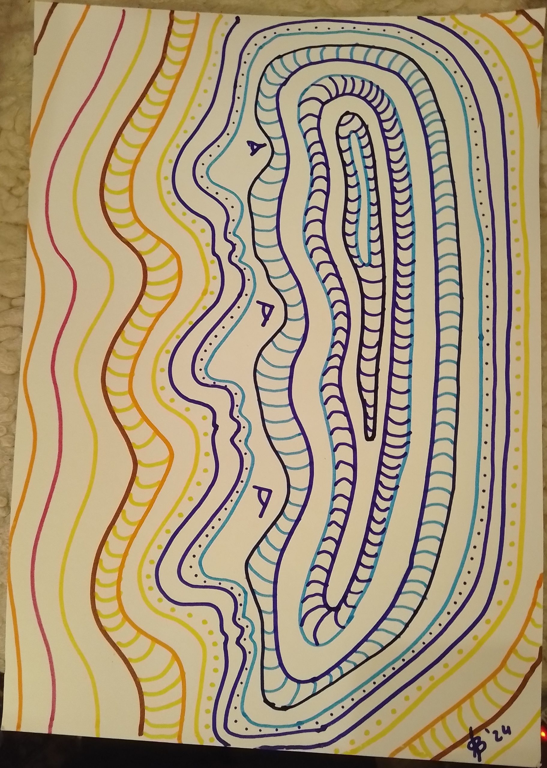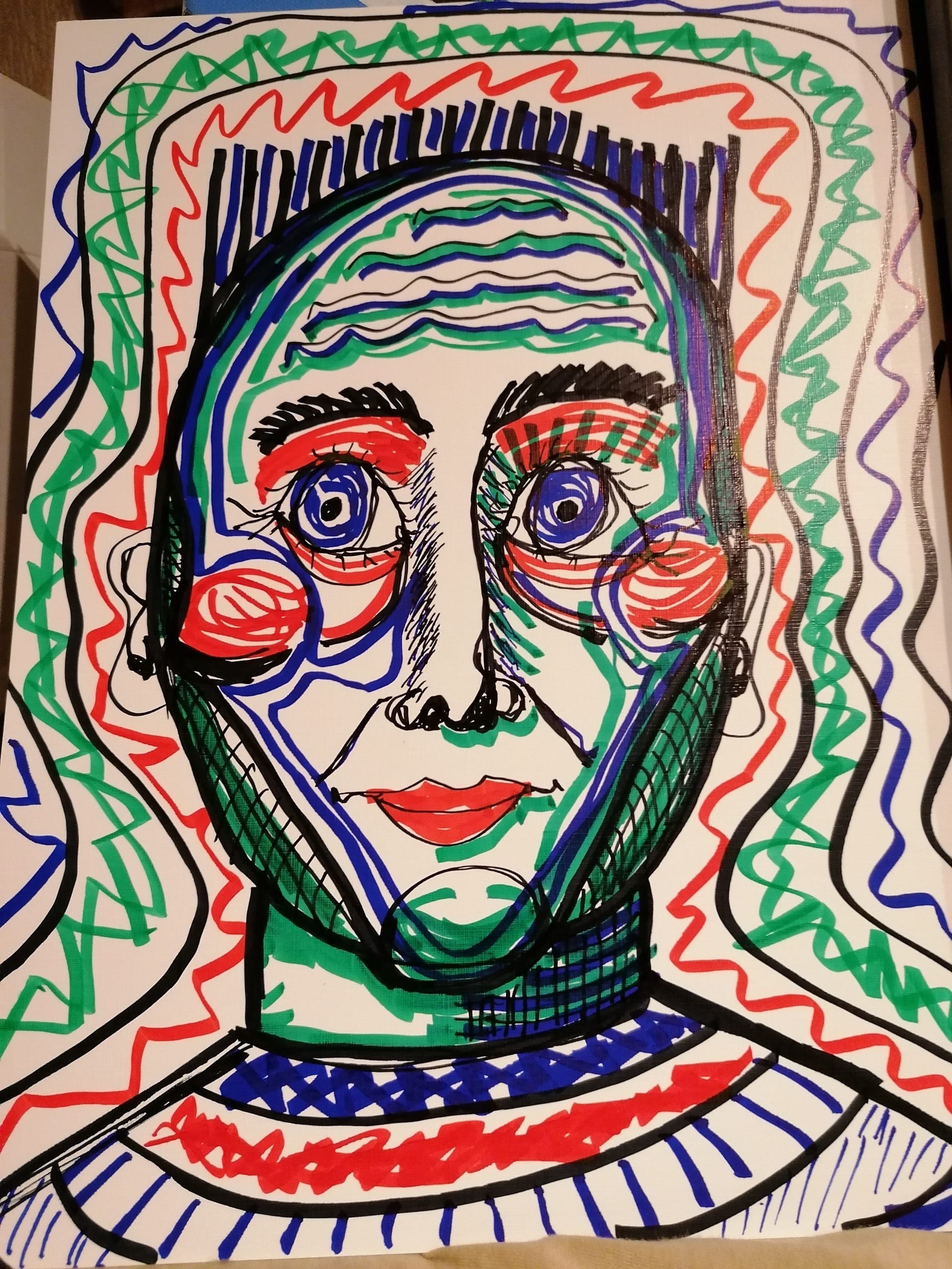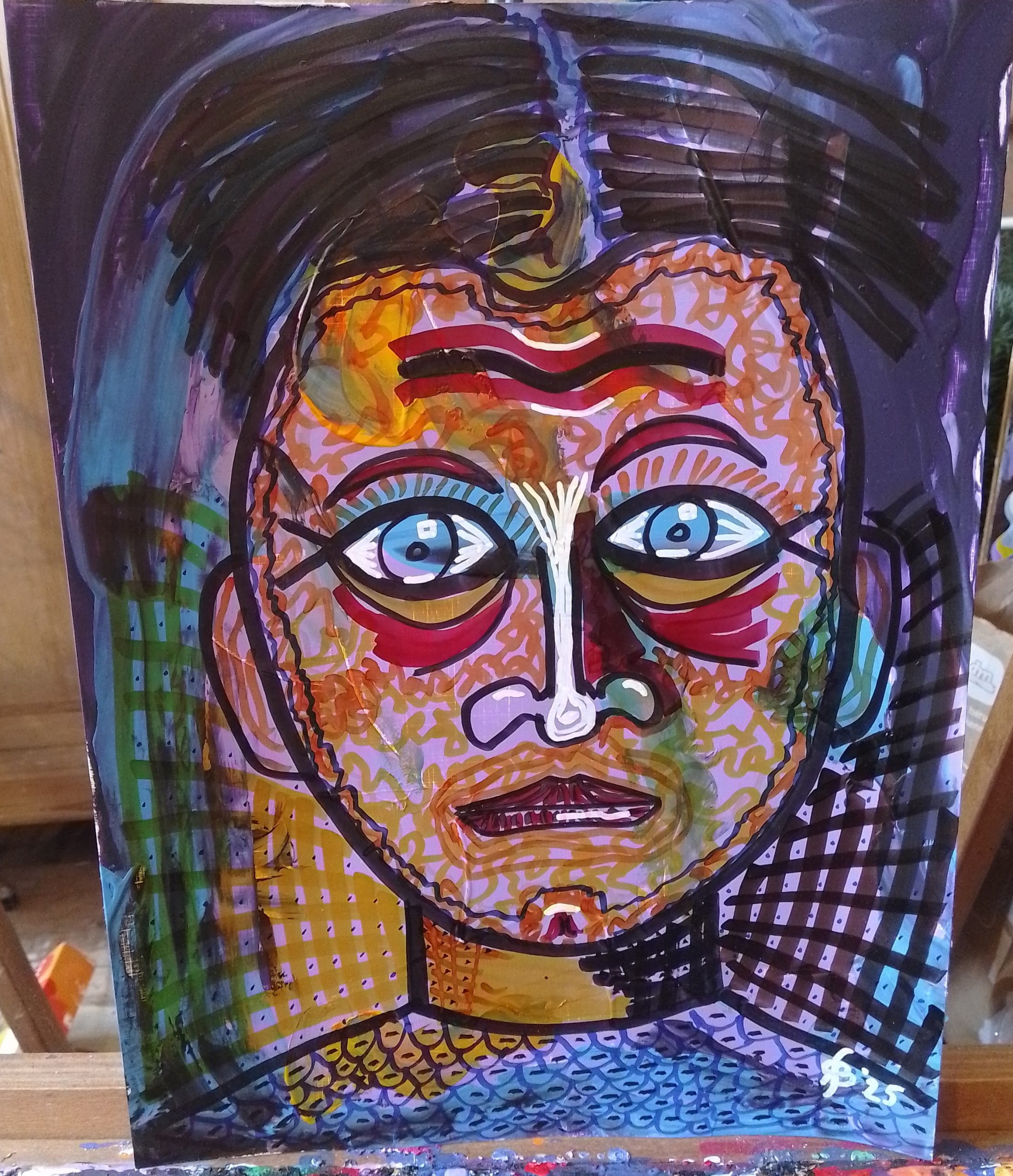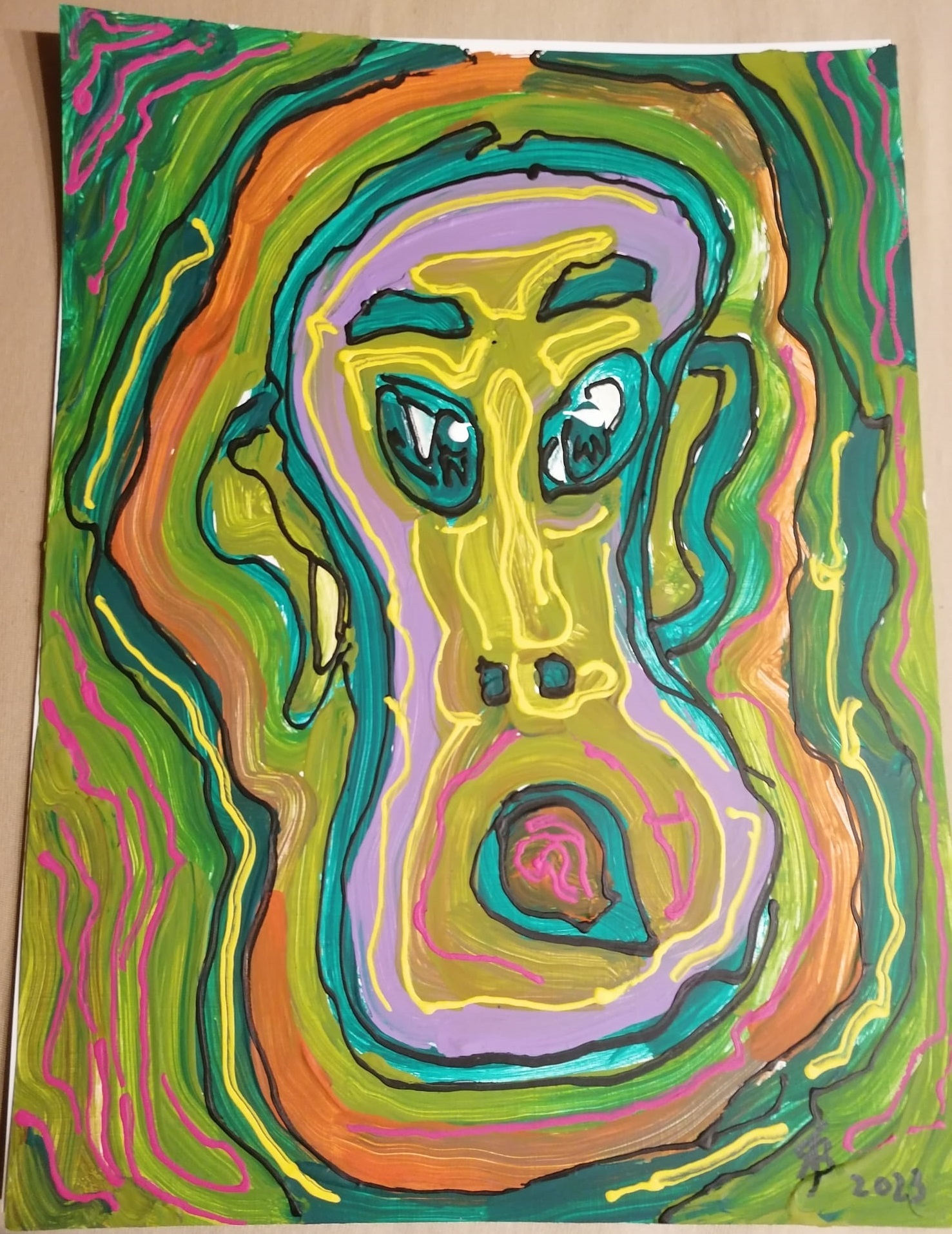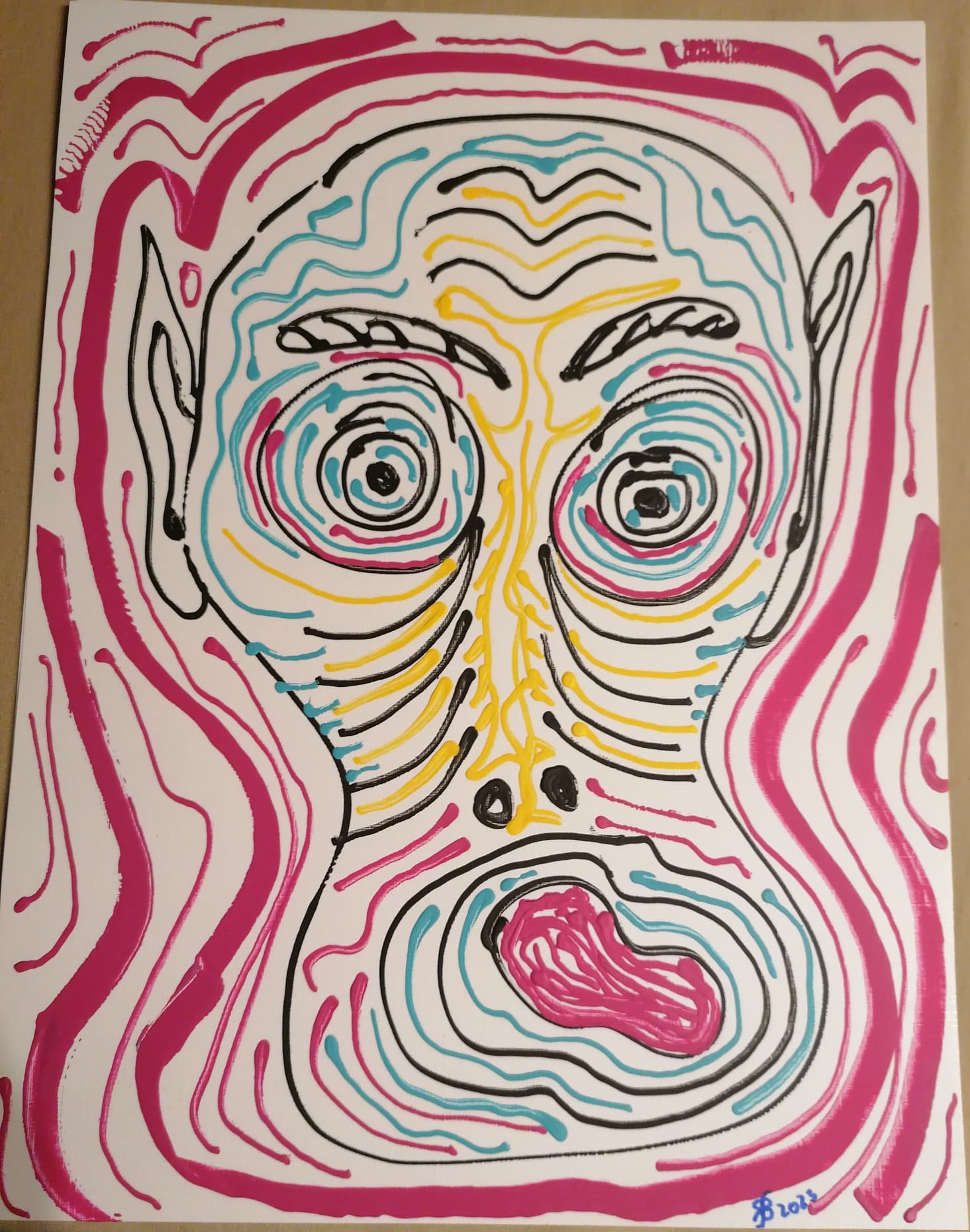 • Gesicht-mit-senkrechten-Linien-40x28cm-2023