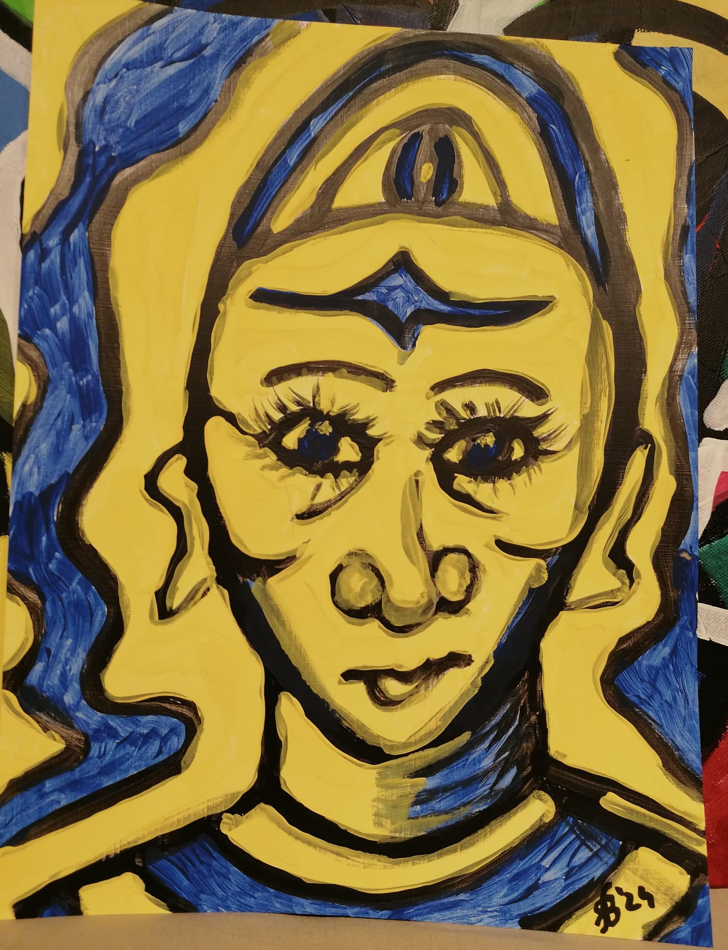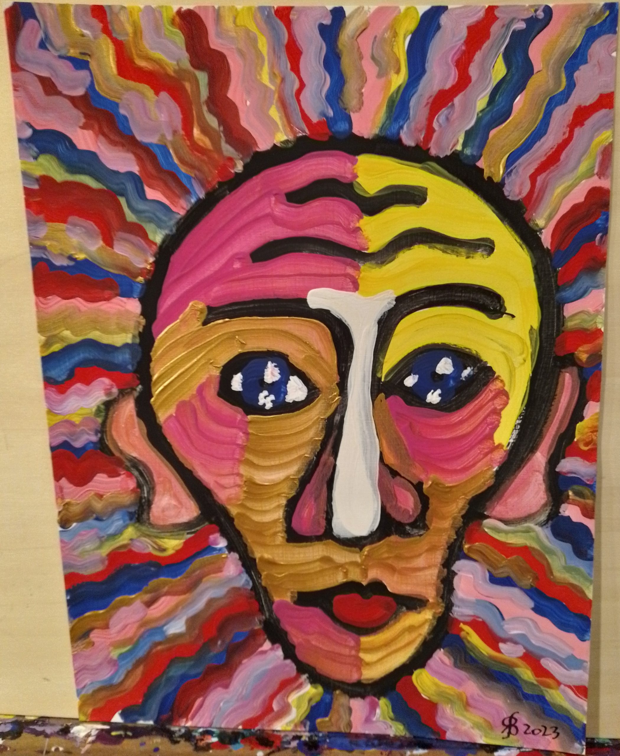 • Gesicht-mit-waagrechten-Linien-70x50cm-2023